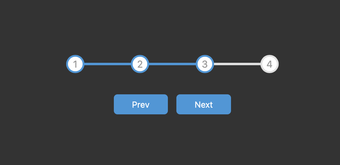 最后编写 JavaScript 函数, 通过监视按钮的点击状态控制当前进度, 相应地修进度条和各个进度阶的 className 切换其样式, 结合 transition 实现无缝的动画效果: