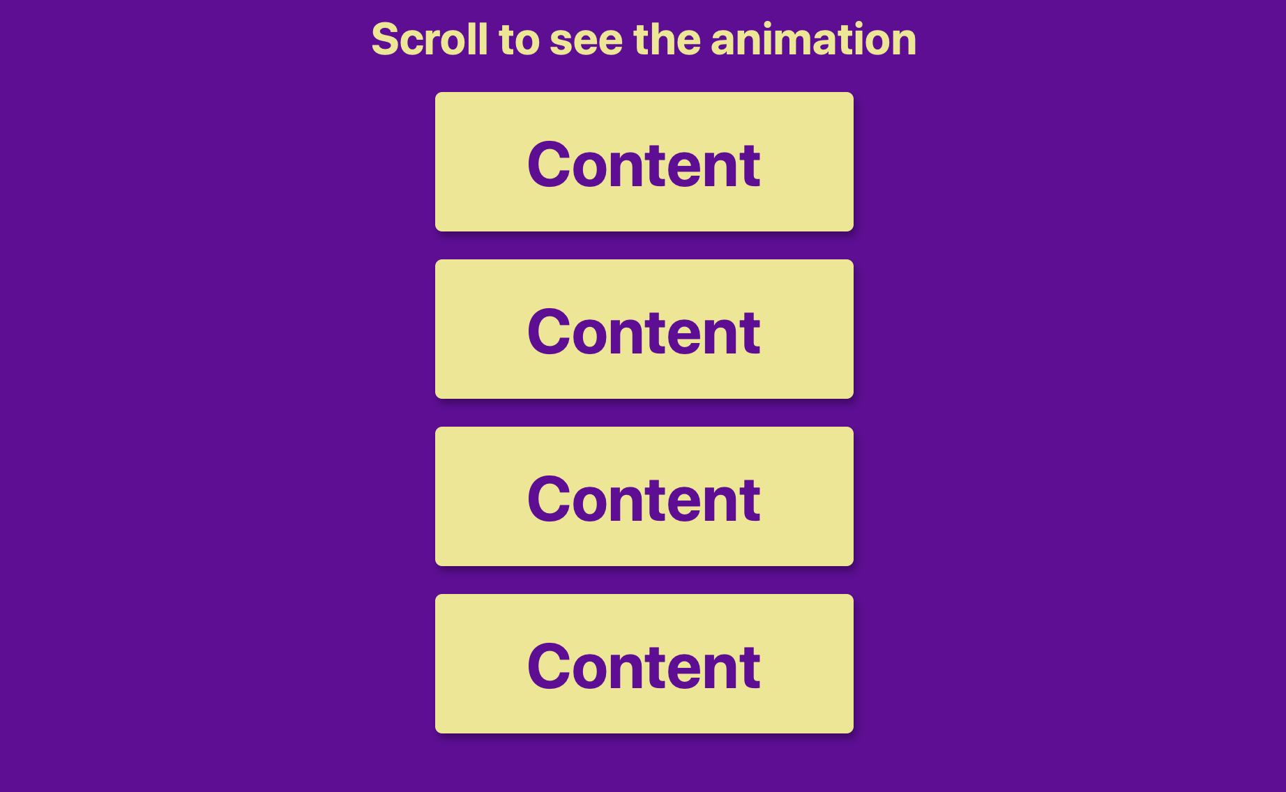 该项目本体展示了一个随着页面下拉, 圆角矩形框体从页面左侧和右侧依次飞入页面中央竖向排列的动画效果.