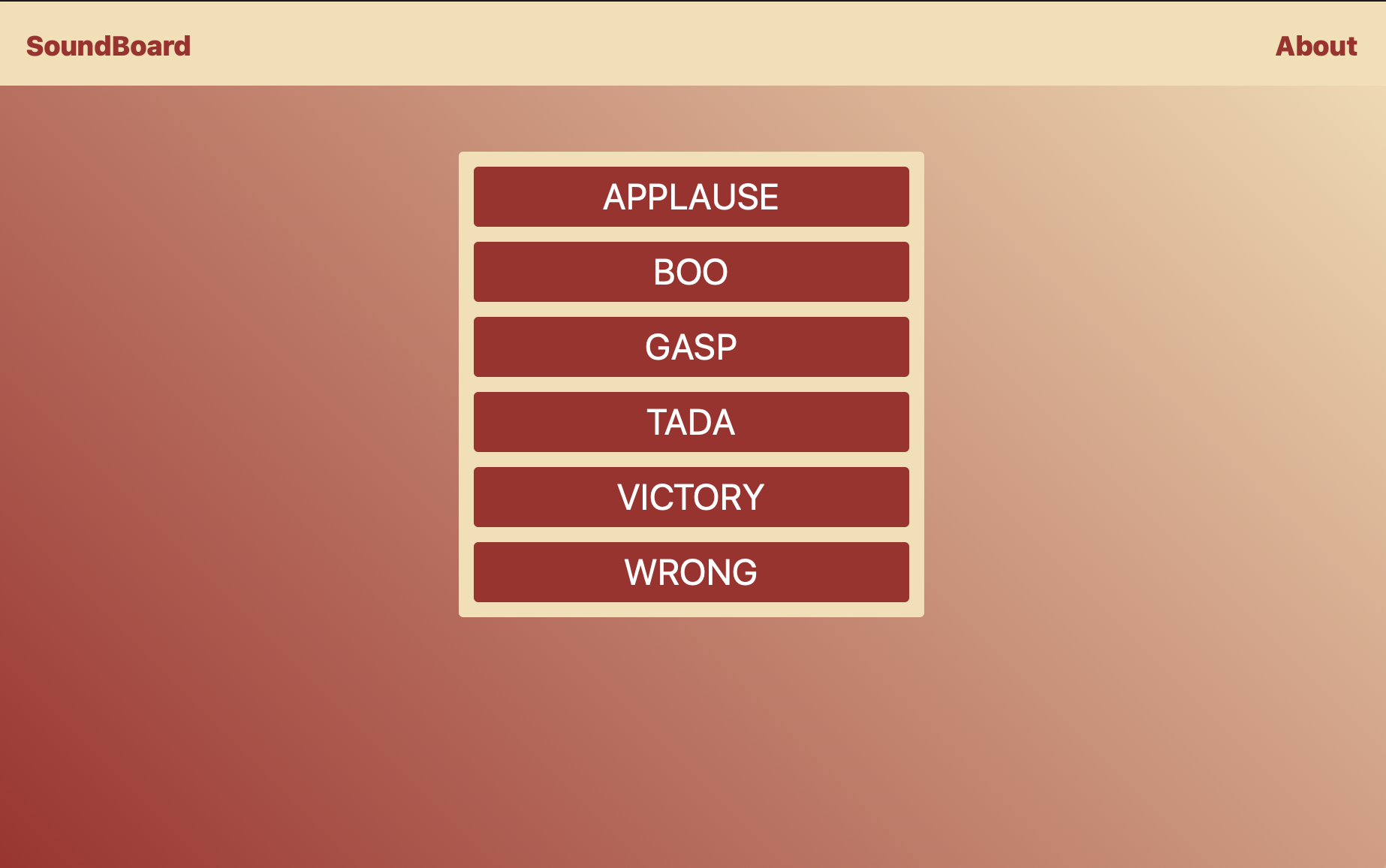 const sounds = ['applause', 'boo', 'gasp', 'tada', 'victory', 'wrong'];