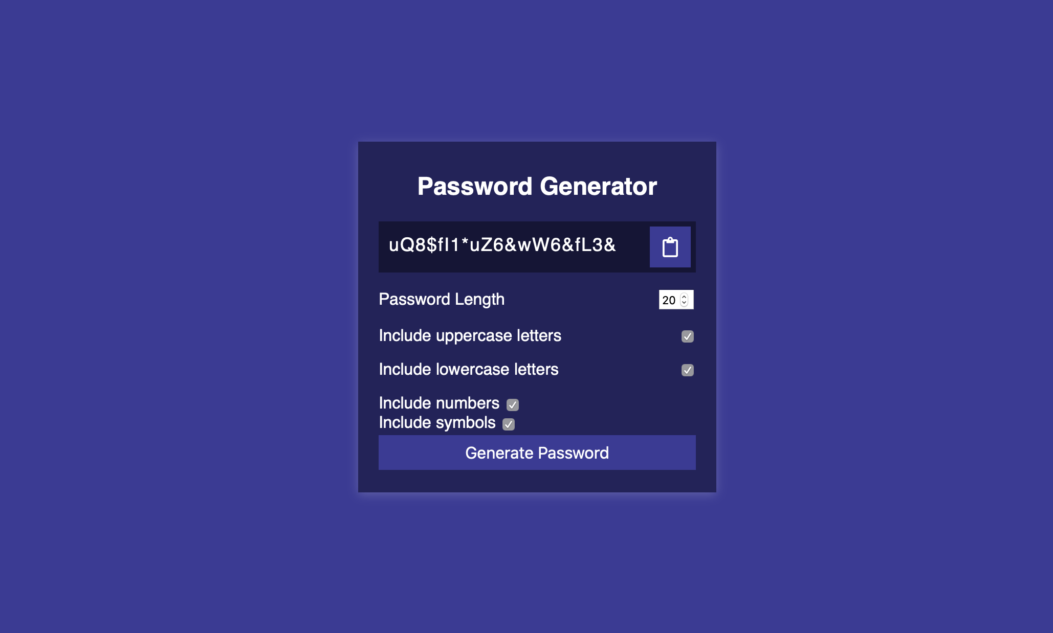 resultEl.innerText = generatePassword(hasLower, hasUpper, hasNumber, hasSymbol, length)