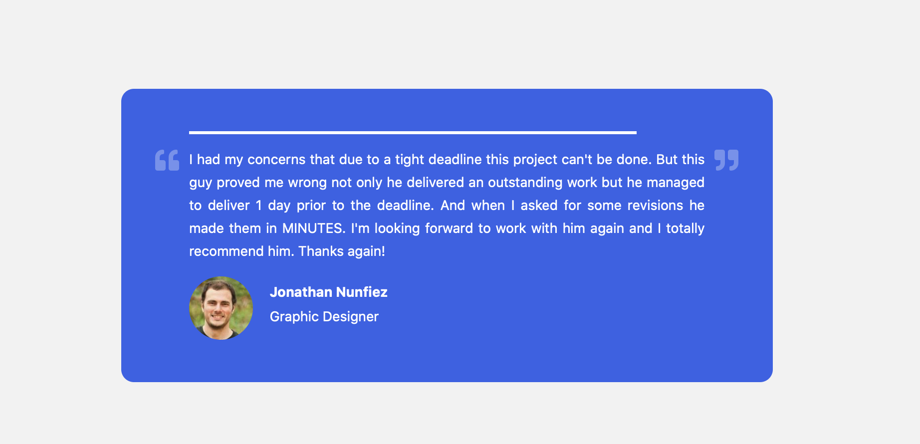 'This guy is an amazing frontend developer that delivered the task exactly how we need it, do your self a favor and hire him, you will not be disappointed by the work delivered. He will go the extra mile to make sure that you are happy with your project. I will surely work again with him!',
